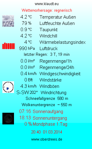 Die Wetterstation (z.Zt.WS2800) ist seit dem 12.11.2004 online. Software © Werner Krenn www.pc-wetterstation.de |